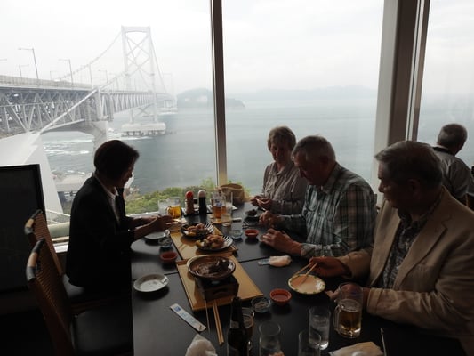 鳴門大橋を眺めながらお刺身や生シラスを食べて頂きました。