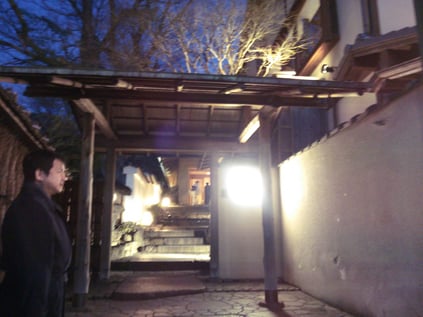 「祇園畑中」で行われ玄関での写真です。風格と落ち着きのある京都らしい佇まいです。
